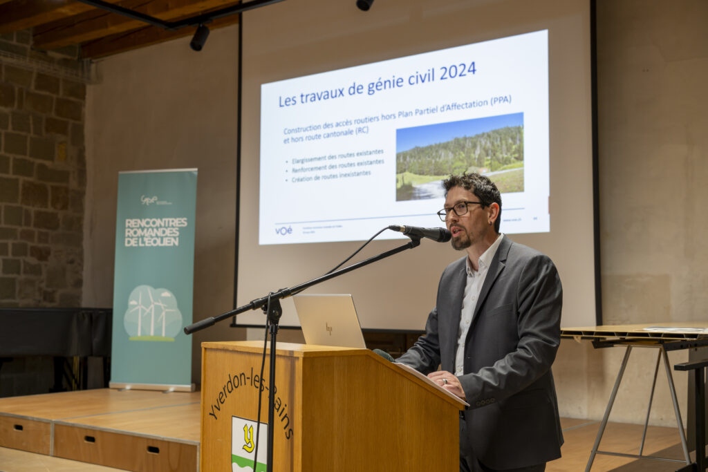 Le Groupe romand pour l’énergie éolienne (GREE) a organisé ce jeudi 26 mars 2026 la première édition des Rencontres romandes de l’éolien au château d’Yverdon-les-Bains. Près de 100 participants et participantes du secteur de l’énergie, des autorités et des milieux professionnels y ont assisté.