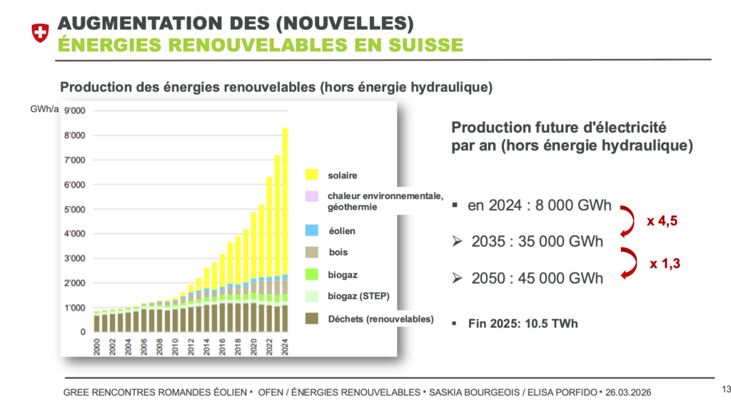 Retour sur la présentation de Saskia Bourgeois (OFEN) à la première édition des Rencontres romandes de l’éolien, le 26 mars 2026.
