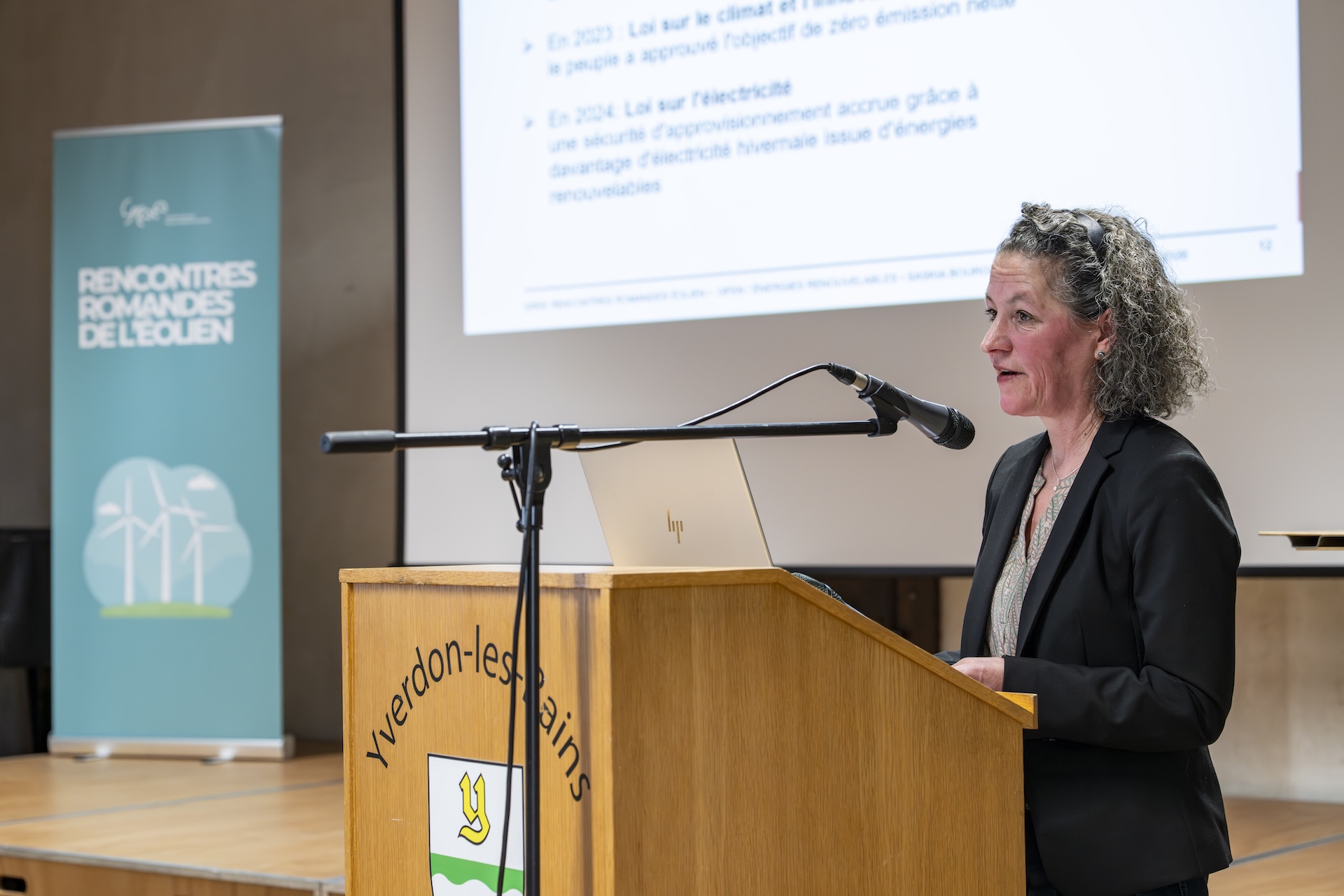 Saskia Bourgeois, de l’Office fédéral de l’énergie, était la première intervenante aux Rencontres romandes de l’éolien le 26 mars 2026 à Yverdon-les-Bains (VD). Elle a commencé par une confidence: elle est originaire de Ballaigues (VD), au cœur de la région qui sera bientôt équipée de nombreuses éoliennes! Elle a rappelé pourquoi l’éolien est indispensable pour l’avenir: le changement climatique est bien réel. Ses effets sont particulièrement marqués en Suisse, où la température moyenne a déjà augmenté d’environ +3°C depuis l’ère préindustrielle (contre +1,3°C au niveau mondial).