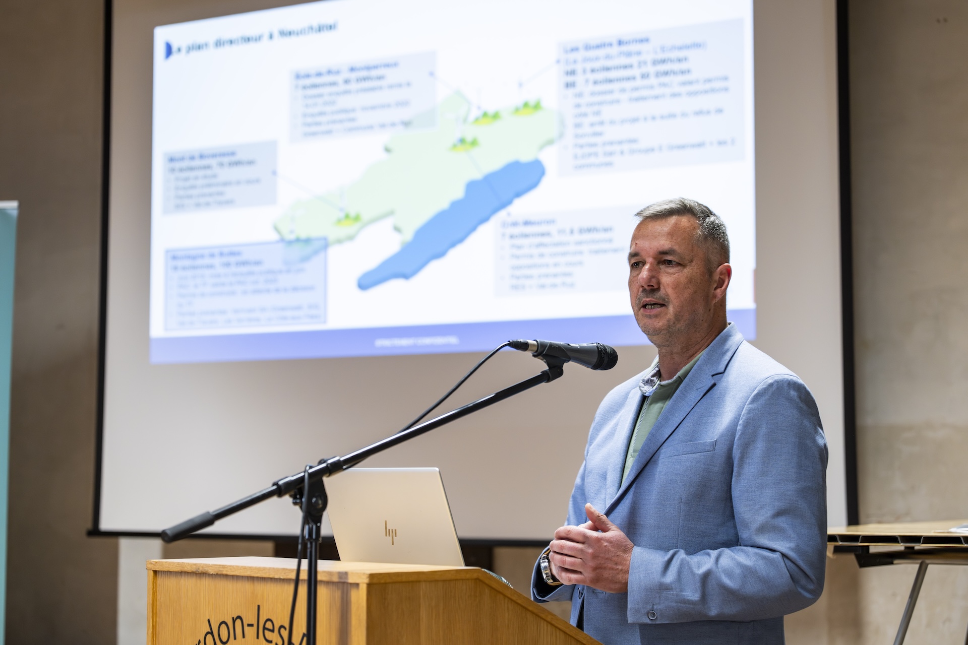 Marc Spitzli, responsable maîtrise d’ouvrage éolien aux Services industriels de Genève (SIG), a présenté l’état d’avancement du projet Montagne de Buttes. C’est l’un des cinq sites retenus dans le plan directeur cantonal neuchâtelois, qui vise une production totale de 200 à 300 GWh par an pour le canton.