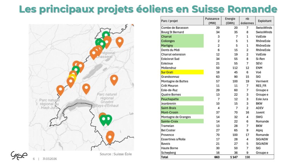 Retour sur l’intervention de Benoist Guillard, président du GREE, à la première édition des Rencontres romandes de l’éolien, le 26 mars 2026.
